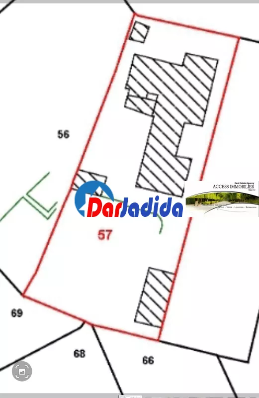 Access immo met en vente un terrain une villa située à Cheraga centre du superficie de 1500m2 de terrain batie sur 300m2 en r+1 composée de 15 pièces, villa à restaurer ou à demolir.