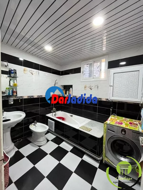 L'agence Immo Carthage vous propose pour Vente Villa (R+1) plus sous sol bien situé à la Caroube 1, terrain de 151M² dont 110M² bâtie, au sous sol: un garage pour 4 voitures et un jardin, au RDC: un salon spacieux avec cuisine , au 1er étage: un F4 , plus une terrasse avec une belle vue sur mer